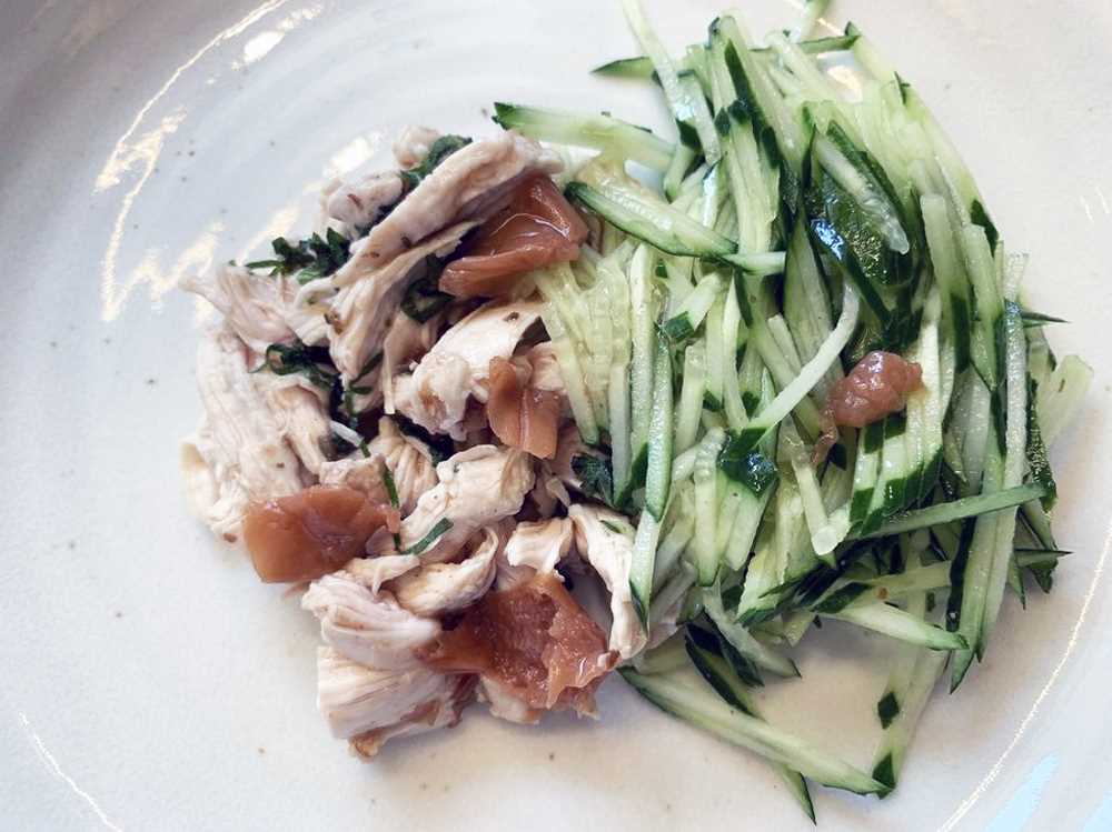 上記の材料、鶏胸肉100g きゅうり1本100g