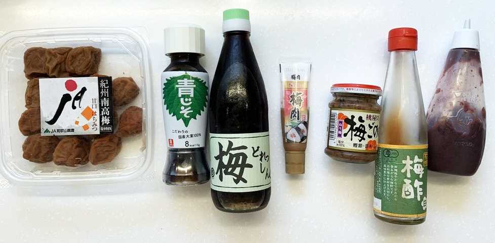さて、我が家の冷蔵庫にある、梅を使った食品です。梅干しや梅酢ドレッシングを使えばより簡単にできます。