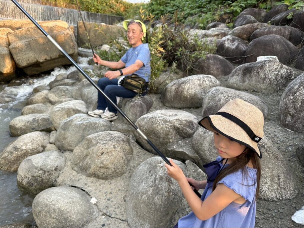 先日、炎天下に鮎釣りをしました。8:30にたっぷりの朝食を食べ、ミルクコーヒーとスタミナドリンク、2Lの麦茶を抱えての川遊びでしたが、10:30の休憩時
