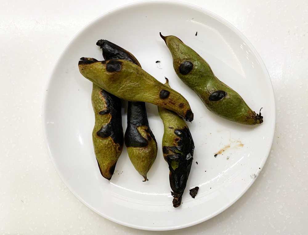 2. 鞘のまま、オーブン、オーブントースター、魚焼きレンジで焦げるまで焼く。