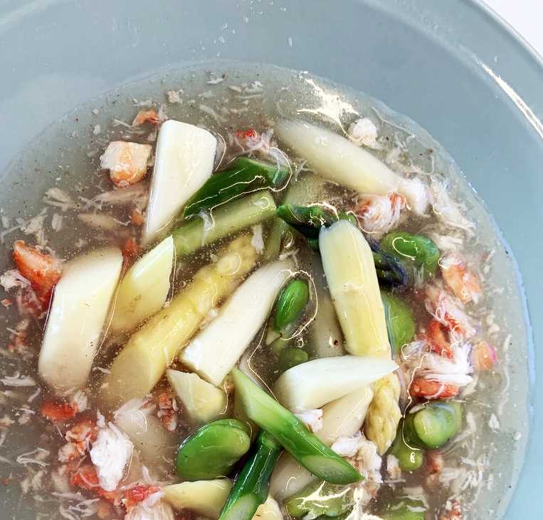 蟹むき身30g アスパラ、緑、白各2本